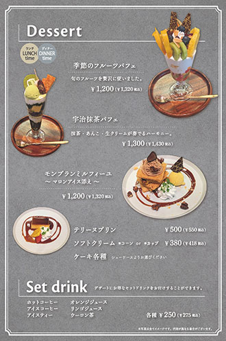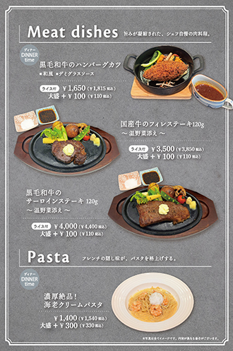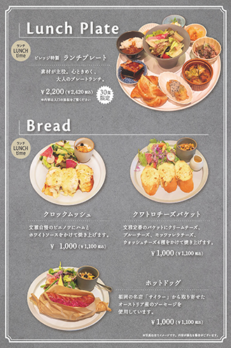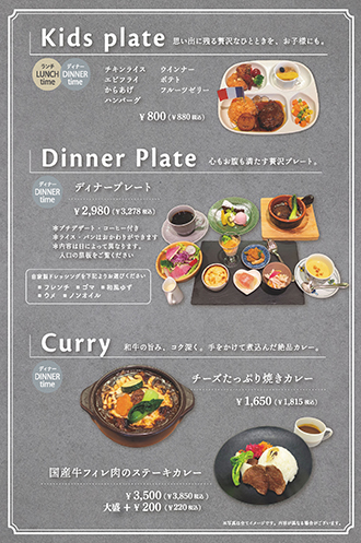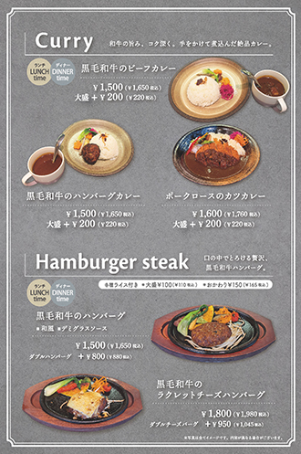 カフェでは、ランチプレートや自家挽きハンバーグ、黒毛和牛ビーフカレー、スイーツがお楽しみいただけます。